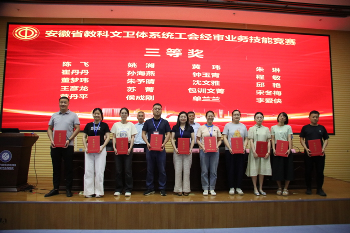 6月13日,安徽省教科文卫体系统工会经审业务技能竞赛举办,来自全省教科文卫体系统工会的近60名经审业务骨干参与角逐,评选出一等奖5名、二等奖10名、三等奖20名。我校教职工包训文菁获三等奖。