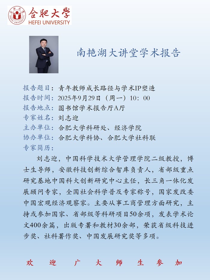 【南艳湖大讲堂】青年教师成长路径与学术IP塑造