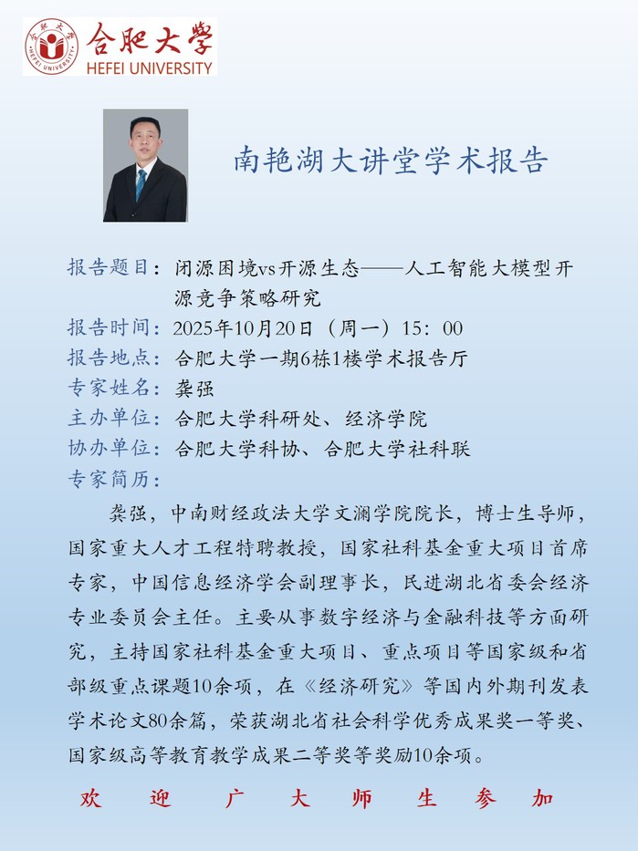 【南艳湖大讲堂】闭源困境vs开源生态——人工智能大模型开源竞争策略研究