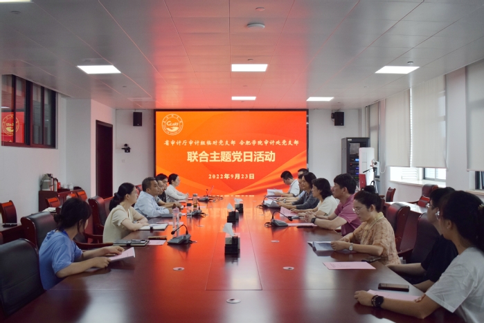 为积极践行习近平生态文明思想,贯彻落实习近平总书记考察巢湖时的重要指示精神,9月23日下午,审计厅驻合肥学院审计工作组临时党支部与合肥学院审计处党支部共同前往巢湖研究院联合开展“喜迎二十大 奋进新征程”主题党日活动。