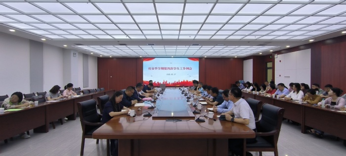 5月27日,学校在大学生活动中心一楼会议室召开2025年春季学期第四次学生工作例会。党委委员、副校长白义香出席会议并讲话,相关职能部门负责人、各二级学院党委书记、副书记、学工办负责人,各物业公司负责人参会,会议由学生处处长丁增云主持。