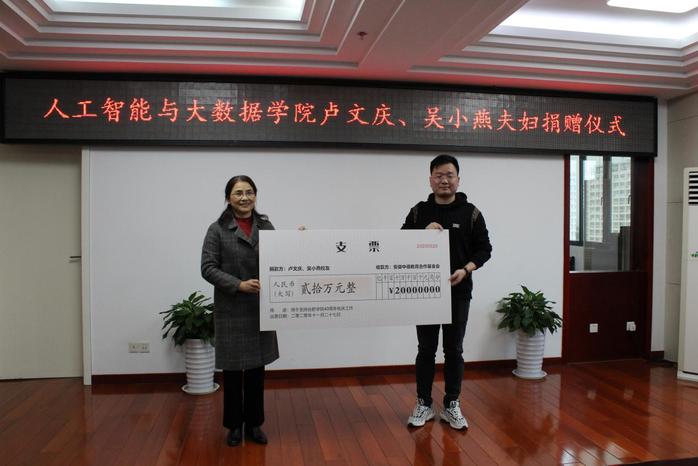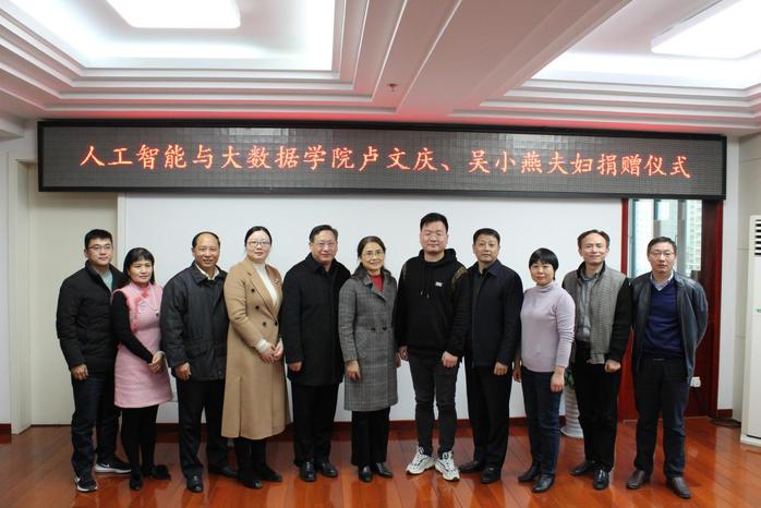 11月27日下午,人工智能与大数据学院2007级信息与计算科学专业优秀校友卢文庆、吴小燕夫妇向学校捐赠200000元,以此表达对母校的感恩之心和反哺之意,为母校40岁生日献礼。