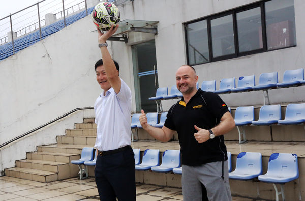 开幕式上,大陆马牌轮胎(中国)有限公司将出征亚洲杯的足球作为礼物赠予我校。