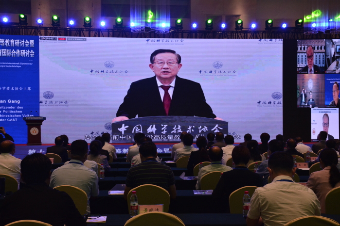 万钢在讲话中指出,今年是中德建交50周年,双方关系展现了充足的活力、韧力和潜力。50年来,中德双方高度重视教育对促进经济社会发展、提升科技创新能力的重要作用,持续开展高等教育领域的交流合作,连续举办了15届的中德应用型高等教育研讨会是双方交流的重要平台和展示窗口。万钢希望,双方立足中德应用型高等教育研讨会的平台,遵循互相尊重、互利共赢的合作理念,进一步加强教育科技文化领域的交流合作。要在交流互鉴中深化改革创新,共同推动应用型高等教育的发展。要在开源开放中共建共享,共同促进高质量创新人才的培养。要在教育交流中扩大合作范围,共同推动科技、人文、经贸与产业的合作。