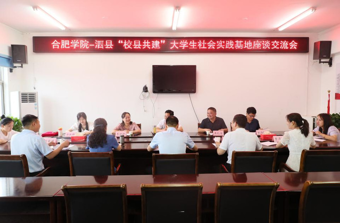 7月6日下午,合肥学院—泗县“校县共建”大学生社会实践基地签约仪式在泗县县委组织部举行。泗县县委常委、组织部部长、统战部部长刘朋,县委组织部副部长沈晓琴、团泗县县委书记姚金波,我校党委组织部正处级组织员周全、外国语学院党委书记吴孔宝、团委副书记李妍妍、副处级组织员张海卿等参加会议,会议由刘朋主持。
