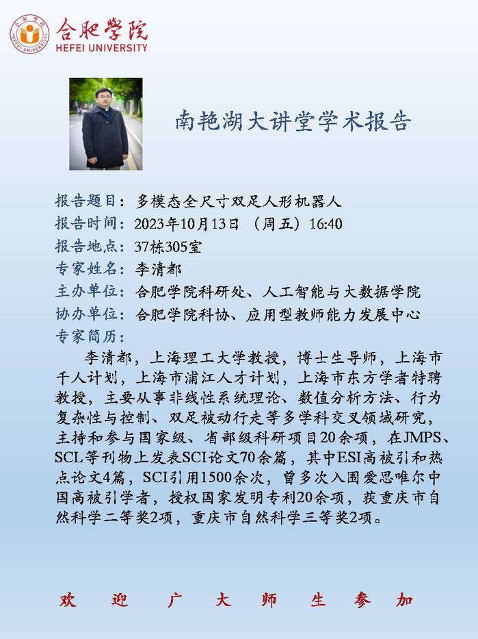 【南艳湖大讲堂】多模态全尺寸双足人形机器人