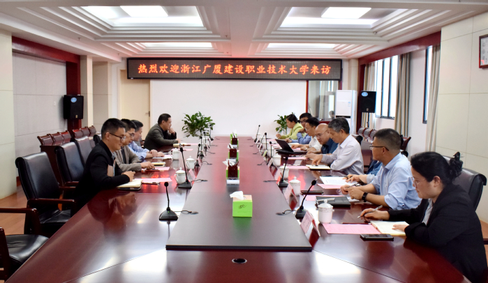 4月16日,浙江广厦建设职业技术大学校长卜月华一行来我校调研交流。我校在行政楼九楼东会议室召开座谈会,校党委委员、教务处处长王晓峰,教务处副处长王仁宝等参加会议,会议由王晓峰主持。